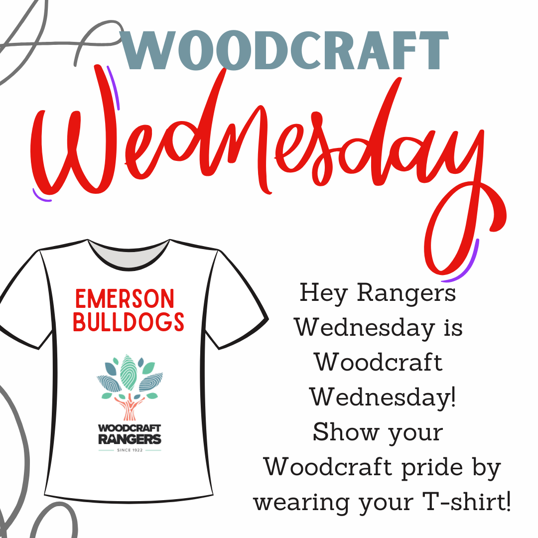 Don't forget to wear your Woodcraft Tee Shirt on Wednesdays!